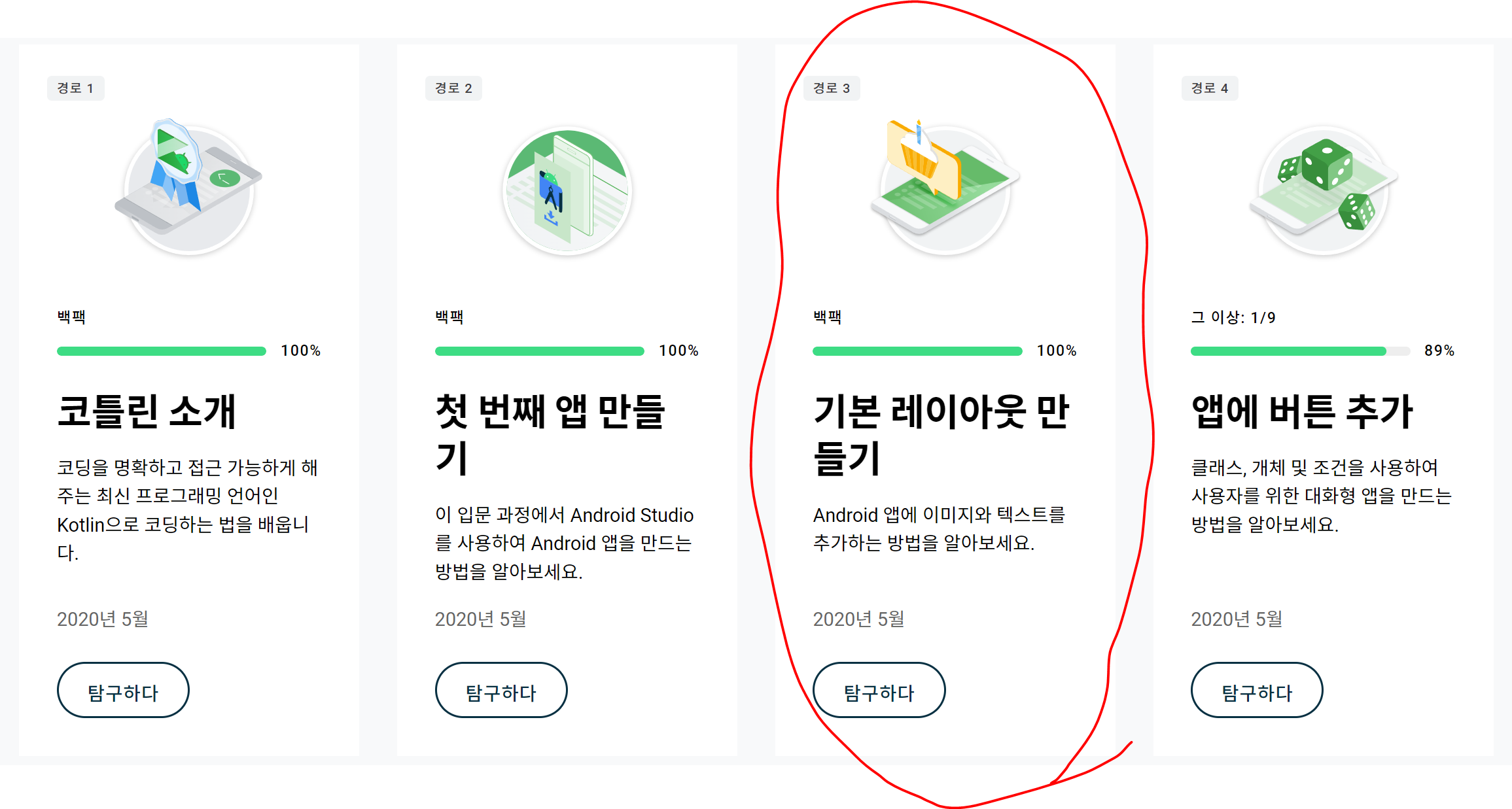 우리가 보이는 화면, 핸드폰에서 보이는 화면을 레이아웃이라는 용어로도 부릅니다. 정확하게 화면이 레이아웃이다!라고 할 수는 없지만, 많은 레이아웃으로 화면을 만든다. 이렇게는 말할 수 있을 거 같습니다. 오늘도 학습 가이드에 따라 차근히 학습해 보겠습니다.