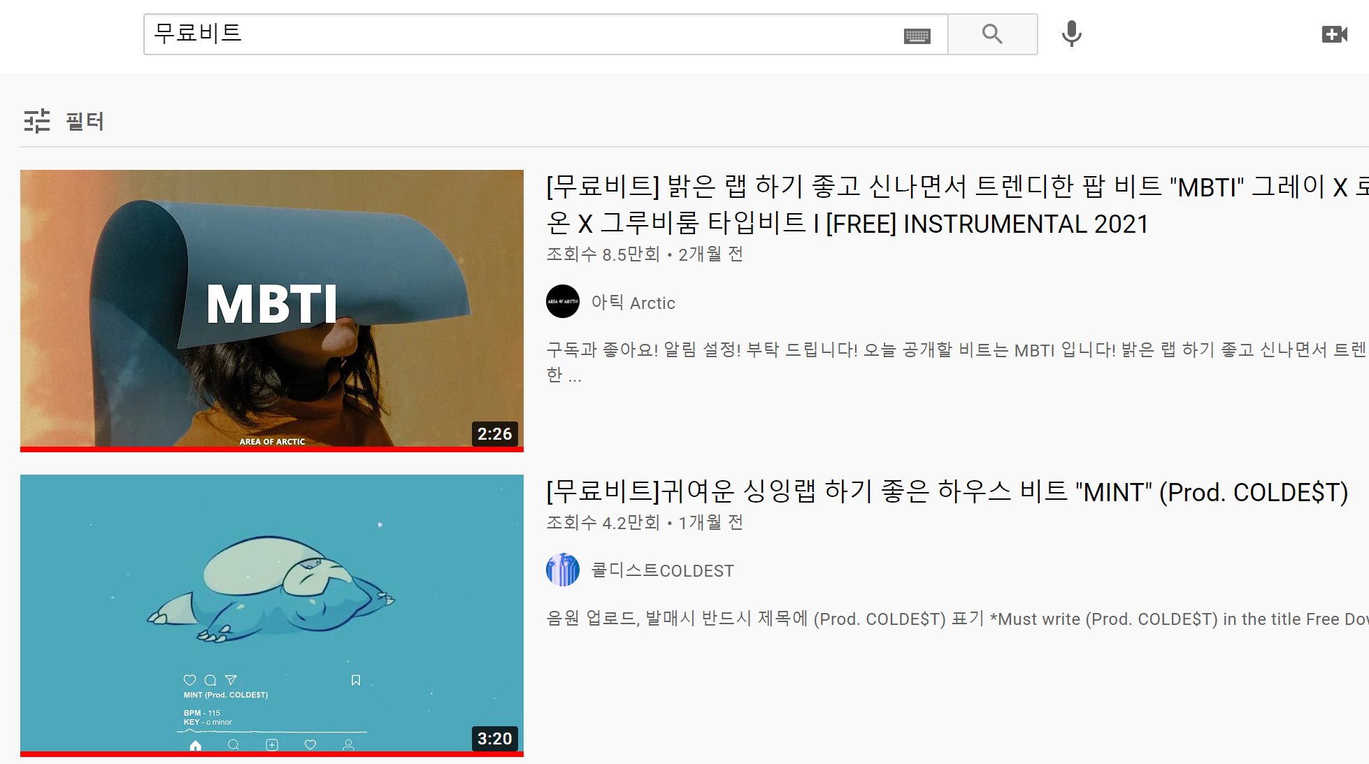 방법 2. 유튜브에서 무료 비트를 검색하여 마음에 드는 비트를 고른다.